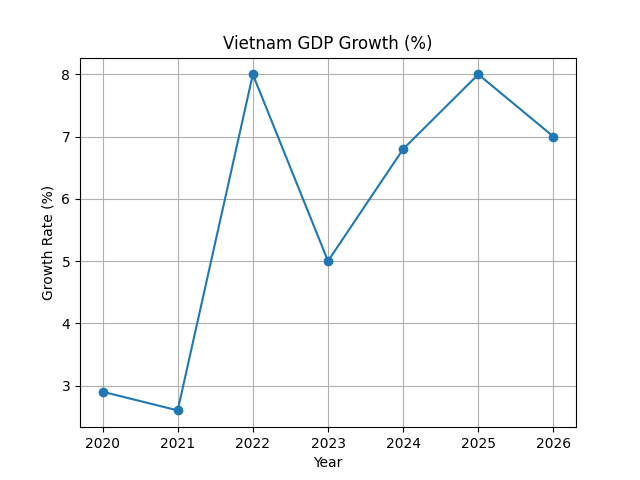 Vietnam GDP Growth Rates (2020–2026). Source: Author’s illustration based on World Bank (2025) and Vietnam Briefing (2026).