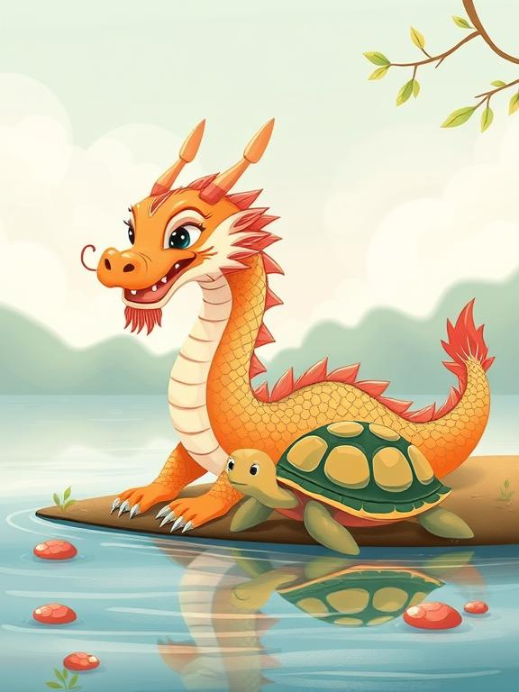 From that day on, the dragon and the turtle lived in harmony, and their friendship became a legend passed down from generation to generation. The dragon protected the land and the sea, and the turtle taught the people and animals the importance of patience and wisdom.
